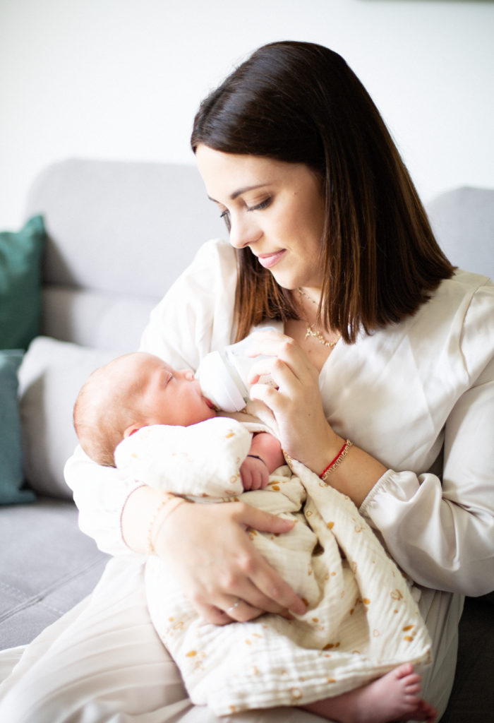 Mais je l’avoue, j’aime encore plus capturer la vie de votre bébé et toutes ces expressions qui leur sont propres. Car un nouveau-né c’est aussi un petit être qui sourit, grimace, baille sans retenue, étire tous ses petits doigts et s’étonne de ce qui l’entoure. C’est aussi vos premiers regards échangés, vos yeux qui brillent remplis d’amour et d’émerveillement. Vos premiers jours ensemble, en train de materner, câliner, allaiter ou donner le biberon.
