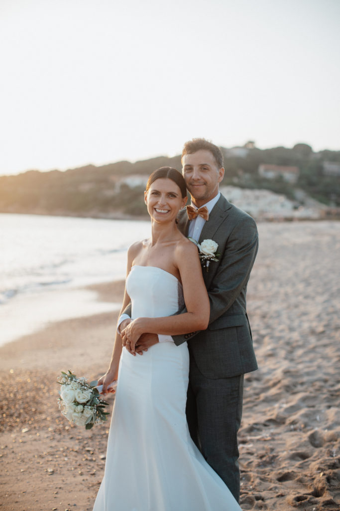 Au moment du coucher du soleil, nous avons profité de la lumière dorée pour réaliser quelques photos de couple sur la plage. La côte autour de Cargèse offre des paysages spectaculaires, parfaits pour des images naturelles et romantiques. Joana et Ghjuvan ont savouré ce moment à deux, loin de l’agitation de la fête, tandis que la mer et le ciel se teintaient de couleurs magnifiques.