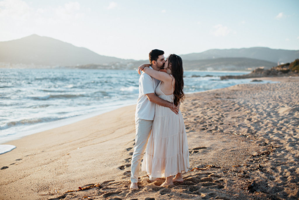 Faire appel à un photographe, c’est aussi profiter de décors exceptionnels. Plages sauvages, maquis ou lumière dorée du soir offrent un cadre magique.